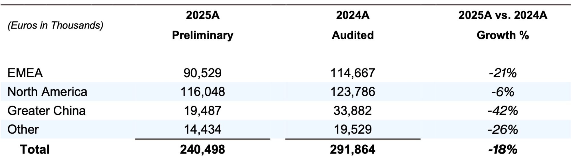 - Preliminary FY2025 revenue of €240.5 million, down 17.6% year-over-year, reflecting industry headwinds and the Group’s proactive transformation and restructuring initiatives. Figures exclude Caruso following its strategic carve-out announced on February 6, 2026(1).